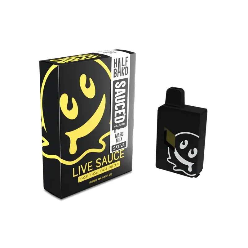 Introducing the Sauce’d Live Resin Disposable by Half Bak’d. This premium product combines a potent blend of cannabinoids with rich natural terpenes to deliver a uniquely potent and flavorful experience. Each 4-gram disposable includes a pre-heat button, auto-draw technology, and specially crafted terpenes for different strains. Elevate your mood, creativity, and relaxation with these meticulously formulated blends.