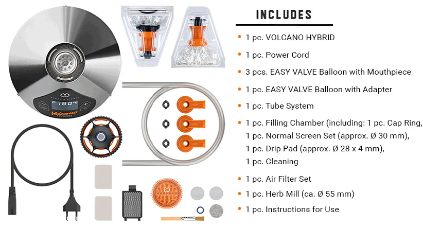 The Volcano Hybrid sets a new standard with rapid heating times of just 1 to 2 minutes and versatile inhalation options, including a tube kit and valve balloon. Its large touch-controlled display offers intuitive operation, putting precise control at your fingertips.