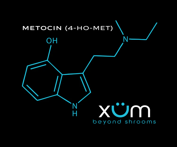 Metocin, also known as 4-HO-MET (4-hydroxy-N-methyl-N-ethyltryptamine), is a synthetic psychedelic belonging to the tryptamine class. Chemically related to psilocin—the active ingredient in psychedelic mushrooms—it shares its family with compounds like psilocybin, DMT, and LSD. First synthesized in the 1960s and later documented by Alexander Shulgin, Metocin is not approved for medical use but is commonly available as a research chemical. Users typically report that 4-HO-MET produces a lighter, more visually oriented experience compared to psilocybin, with less emotional intensity. Visual effects include brightened colors, geometric patterns, mild distortions, and enhanced depth perception. Mentally, it often induces euphoria, boosts creativity, and promotes mild introspection while causing less anxiety and ego dissolution than classic mushrooms. Physically, it delivers a subtle body buzz with minimal nausea and mild stimulation. The experience begins within 20 to 45 minutes, peaks around 2 to 3 hours, and lasts approximately 4 to 6 hours—shorter than LSD and slightly briefer than many mushroom trips. Pharmacologically, Metocin acts primarily as a serotonin receptor agonist, especially targeting 5-HT2A receptors. It is likely metabolized similarly to psilocin and exhibits cross-tolerance with other classic psychedelics. Safety considerations include limited human research and psychological risks common to psychedelics such as anxiety or panic. It is not physically addictive but should not be combined with SSRIs, MAOIs, or stimulants. Long-term effects remain poorly understood, and purity or dosing risks exist when obtained from unregulated sources. In summary, Metocin offers a socially accessible psychedelic experience characterized by vivid visuals and moderate mental effects, making it distinct within the tryptamine family while requiring cautious use due to limited research and potential risk