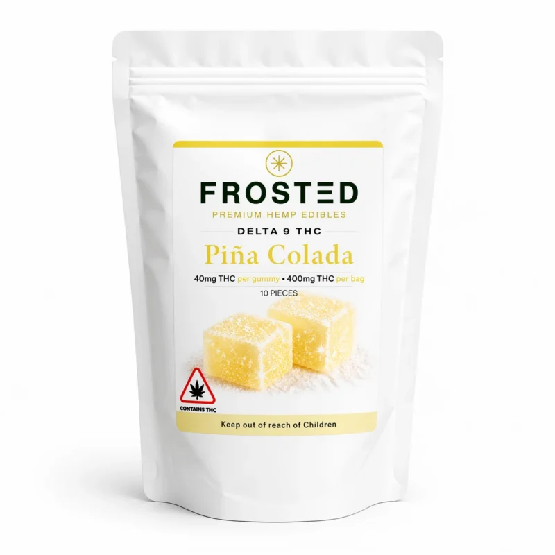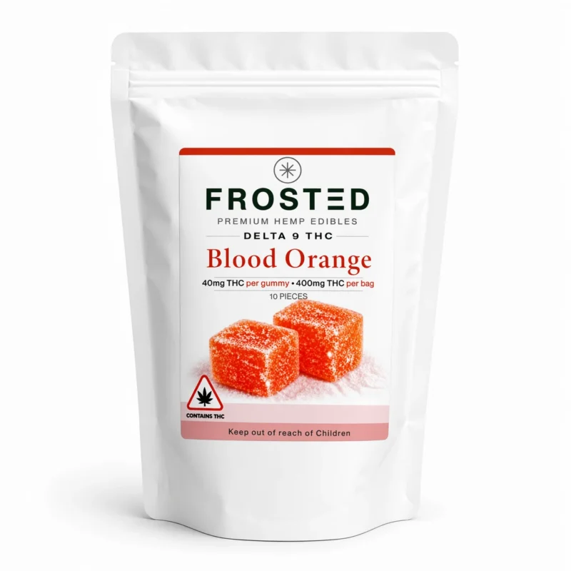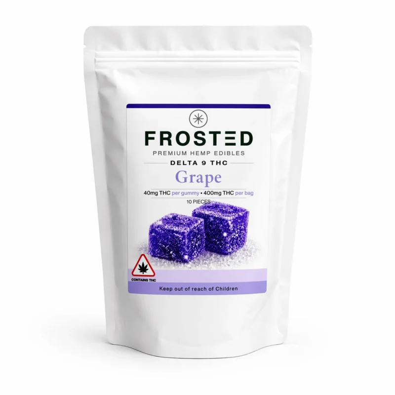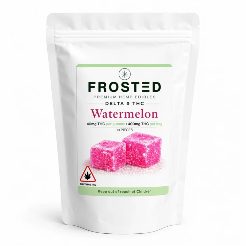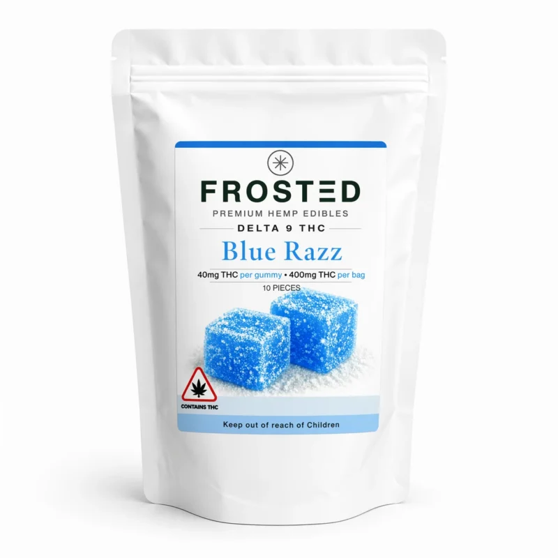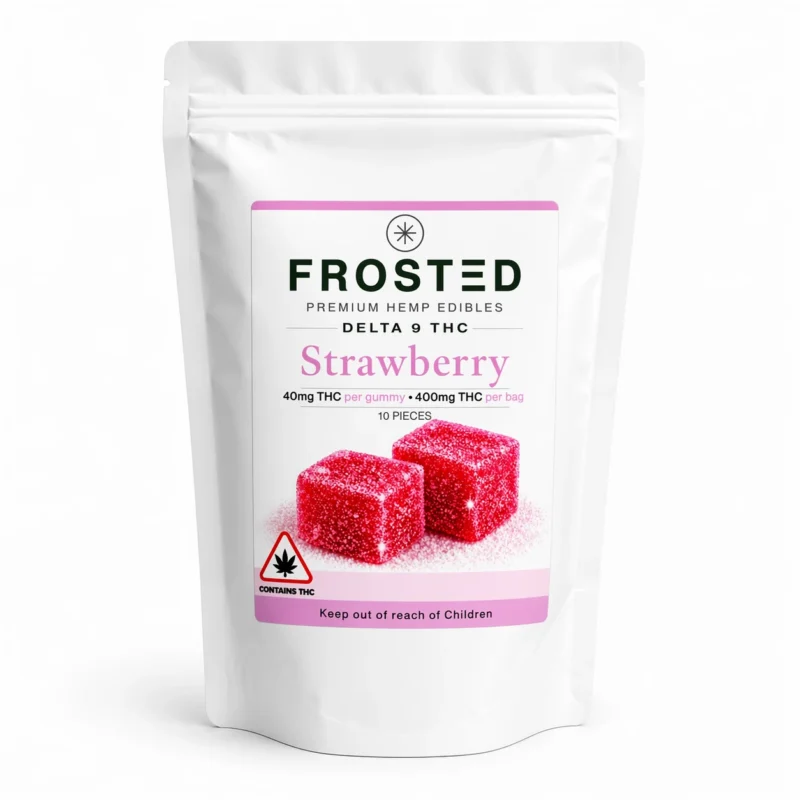 Frosted Gummies are high-potency hemp-derived THC edibles containing 40mg Delta-9 THC per gummy, designed for strong and long-lasting effects.